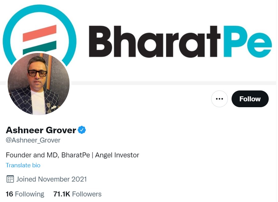 Notably, Ashneer Grover had not updated his Twitter bio with the same information, until this report was published. His Twitter profile showed him as the Founder and MD of BharatPe.