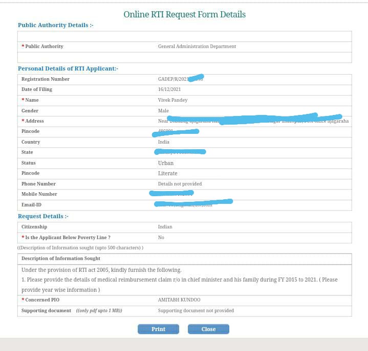In his RTI query, the activist had asked details pertaining to medical reimbursement claim for Delhi Chief Minister and his family during FY2015 to 2021.