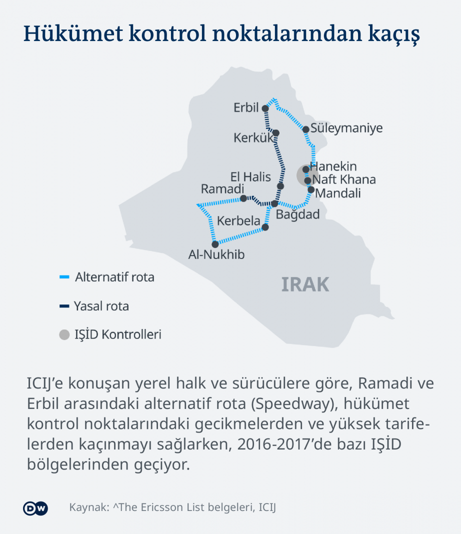 Reportedly, Ericsson paid USD 22,000 per truck to carry three loads on a single day through the Speedway. While the owner of Cargo Iraq denied paying to ISIS, the internal investigation suspects that Asiacell has engaged in smuggling and potential illegitimate payments directly and through Ericsson.