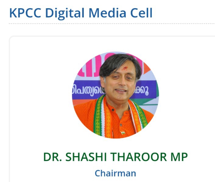 Senior Congress leader Shashi Tharoor is currently the Chairman of Kerala Congress Digital media cell.