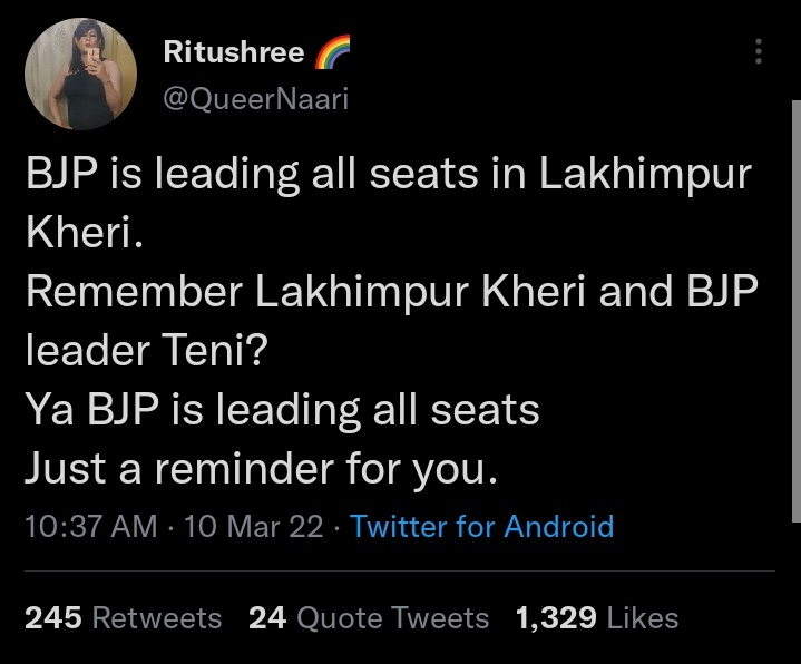 As BJP won all seats in Lakhimpur Kheri, Ritushree, a queer girl, expressed her shock, asking people whether they remembered BJP leader Teni.