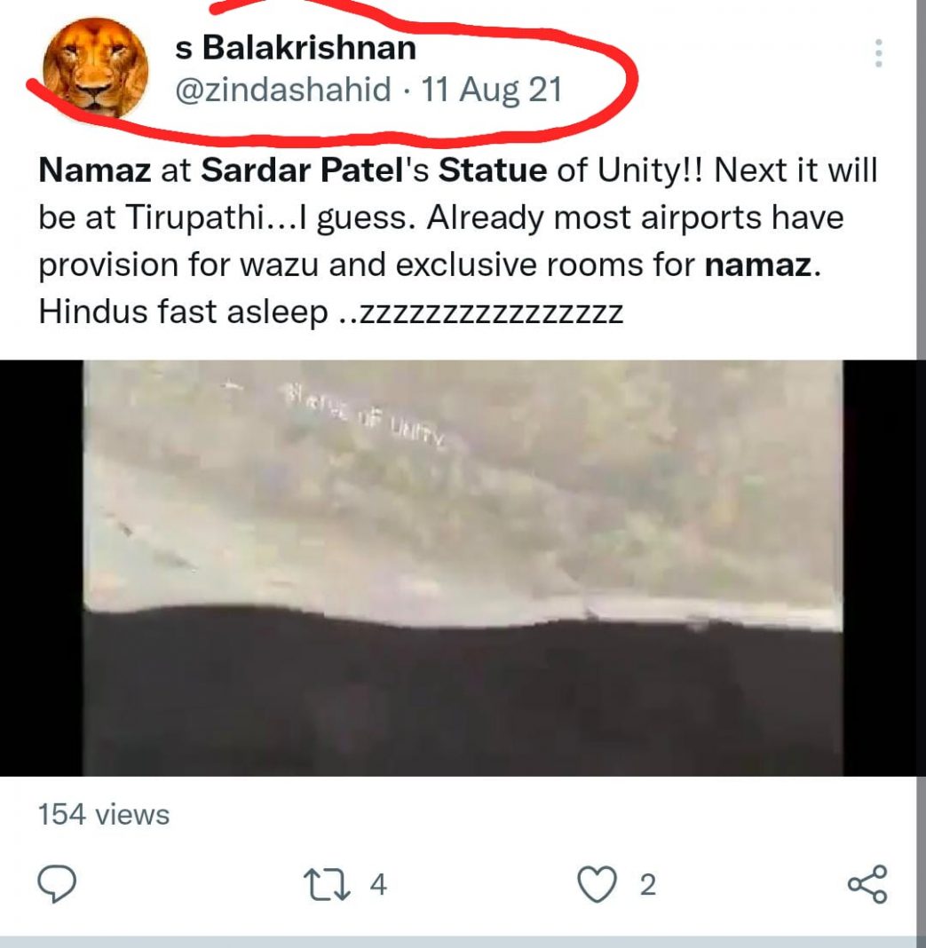 However, according to a post shared on Facebook, the video of namaz being offered inside the Statue of Unity is at least 8-months-old. The video thaT is doing the rounds recently was shared by a Facebook user on 11 August 2021, highlighting how public places were being used for offering namaz.
