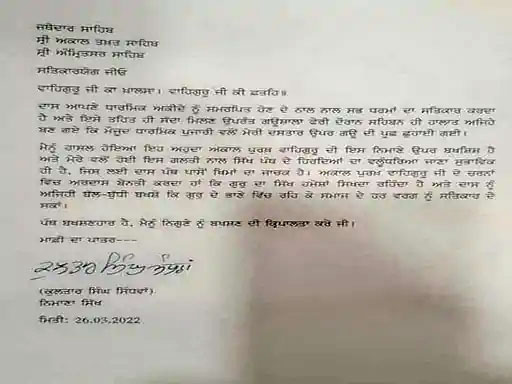 He said in his apology letter, “Along with my devotion to my own faith, I respect all religions. During a visit to a Gaushala, circumstances led to a religious priest touching my turban with the tail of a cow.”