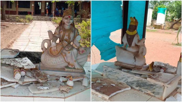 In Chikkodi taluk of Belgaum district, some unidentified miscreants have vandalised the idol of Saraswati idol present inside the government primary school.