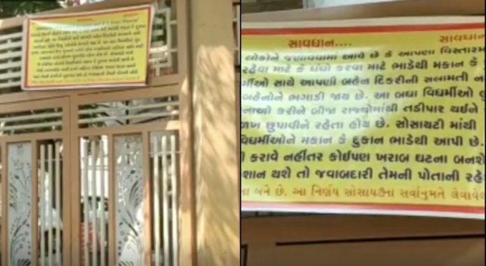 Residential societies in Surat have put up banners on their gates and compound walls informing about the decision taken by the societies not to rent shops or houses to non-Hindus. In the Varachha area of Surat, such banners were seen on the gates of 10 to 12 societies including the Mira Nagar societies. The banners clearly state that ‘non-Hindus are trapping Hindu sisters and daughters in the area in love jihad and due to this reason our ladies are not safe from non-Hindus in this area’. Therefore it is written in the banner that no shops or houses should be rented to non-Hindus.
