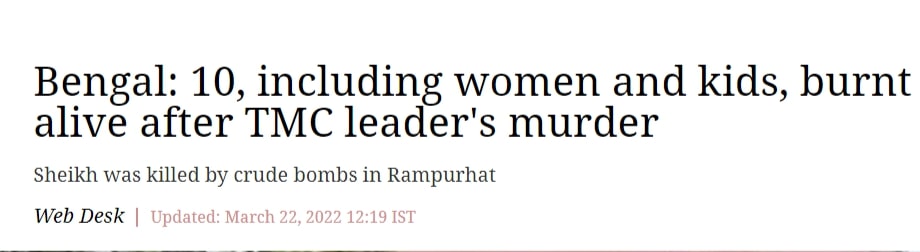 ANI reported that 7 dead bodies were recovered from a single house, which was then sent to the Rampurhat medical college hospital. As per a report published by India Today, the miscreants locked the houses from outside before setting them ablaze, thereby leaving no scope for the occupants to vacate.