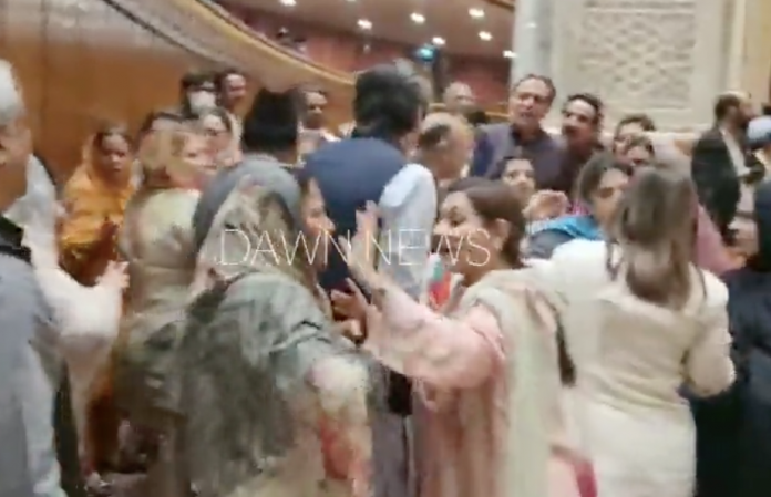 Visuals of Pakistani lawmakers engaging in fistfight have come to light amid the major political drama in the neighbouring country on the first day of holy month of Ramzan. In a video shared by Pakistani journalist, women members of Punjab Assembly can be seen getting violent with each other as they punch each other.