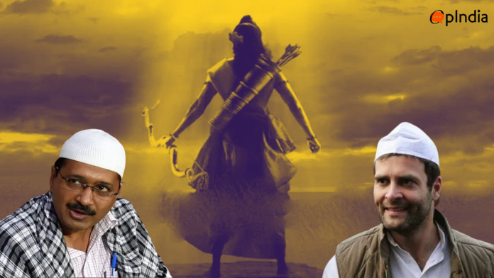 It is not just Rahul Gandhi. Delhi Chief Minister Arvind Kejriwal went a step ahead to secularise the Hindu festival of Ram Navami by placing his image before an image that uncannily resembled the central dome of the disputed structure that stood on the Ram Janmabhoomi, often referred to as ‘Babri Masjid’.
