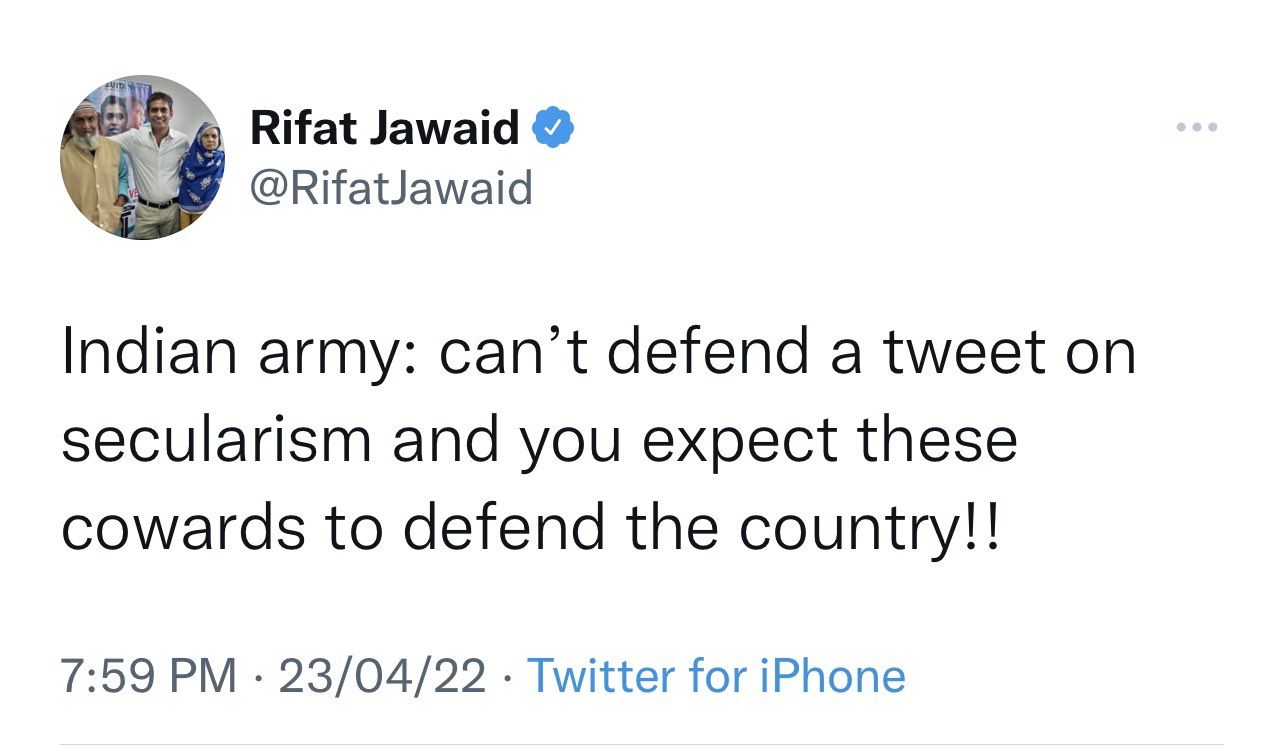 Rifat Jawaid’s tweet calling the Indian Army coward came after the Defence ministry’s public relations officer (PRO) in Jammu allegedly deleted the tweet of Indian army personnel celebrating Iftaar, blogger Rifat Jawaid took to Twitter to label the Indian army as ‘cowards’.