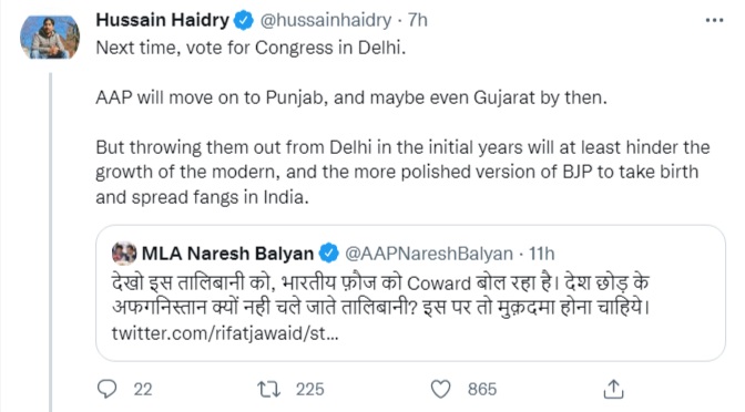 “Next time, vote for Congress in Delhi. AAP will move on to Punjab, and maybe even Gujarat by then. But throwing them out from Delhi in the initial years will at least hinder the growth of the modern, and the more polished version of BJP to take birth and spread fangs in India,” remarked Bollywood scriptwriter Hussain Haidry.