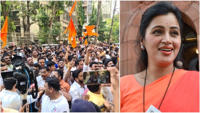 On Saturday, Shiv Sena workers thronged outside the residence of Amravati Lok Sabha MP Navneet Rana in Mumbai to protest against her decision to chant Hanuman Chalisa along with her husband MLA Ravi Rana outside ‘Matoshree’ the residence of Maharashtra CM Uddhav Thackeray.