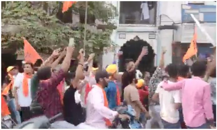 The video pertains to the moment exactly when the Muslim mob attacked Hindu devotees during the Hanuman Jayanti procession in Delhi’s Jahangirpuri. In the video, it is clearly seen that the Muslim mob attacked the Hindu devotees from behind in front of a mosque.