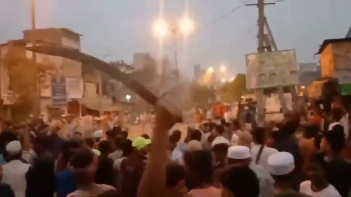 Swords were brandished by the mob amid the chants of Allahu Akbar.