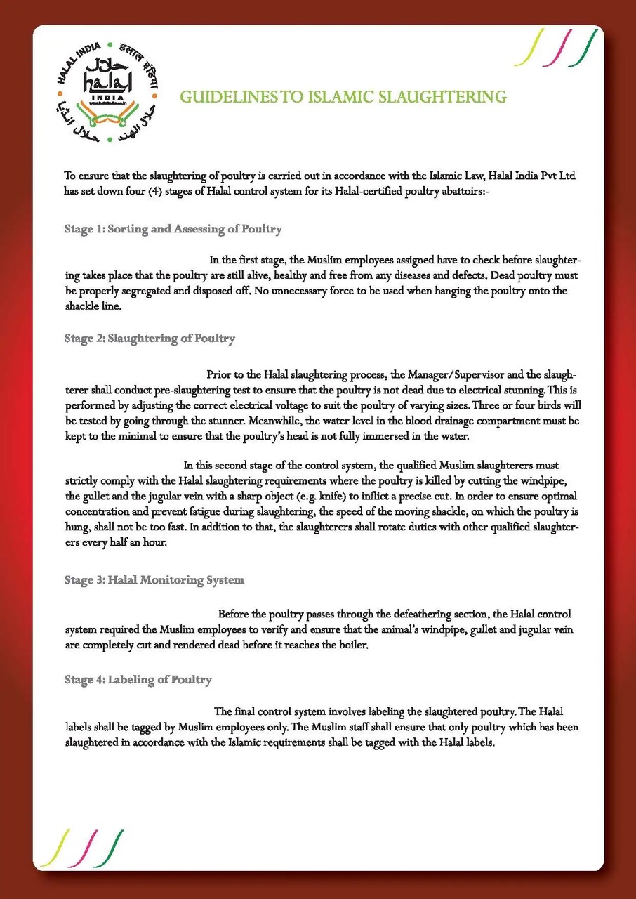 Throughout the document that lists the guidelines for Islamic slaughtering, care is taken to mention the religion of the employees involved. It makes it abundantly clear that only Muslim employees are allowed to participate in the entire process at every stage. Even the labelling of the meat can be done by Muslims only.