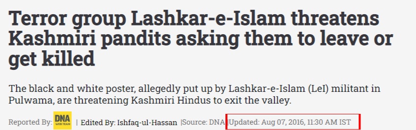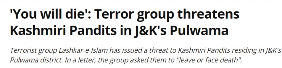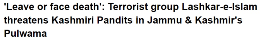 Terror organization Lashkar-e-Islam has issued a warning to Kashmiri Hindus to ‘leave Kashmir or get killed’. ??? pic.twitter.com/UubI2fnJqI