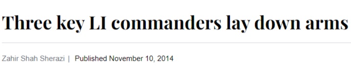 Again in November 2014, it was reported that 3 key commanders of Lashkar-e-Islam had surrendered before the Pakistani authorities. The terrorists included Saifullah Saif, Ilyas and Wajid.