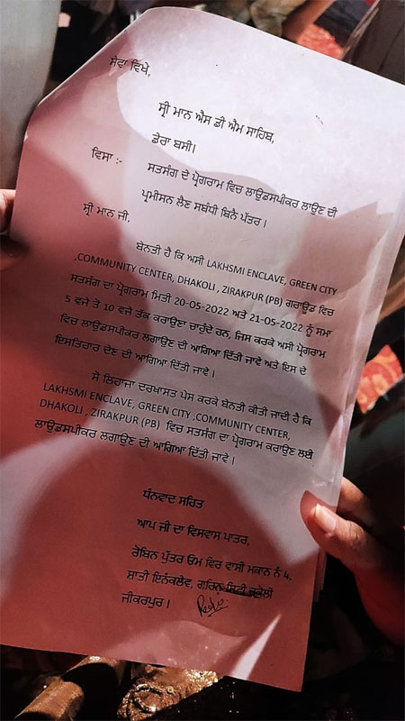 Notably, the permission documents shared with OpIndia by the locals did not mention the Christian program or ‘Changai Sabha’. The application given by the Church group read, “We are organizing a Satsang at Lakshmi Enclave, Community Center, Dhakoli, Zirakpur. We request you to allow us to use loudspeakers for the same.”