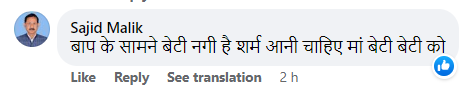 Another user named Sajid Malik said “Daughter is naked in front of father, mother-daughter should be ashamed”
