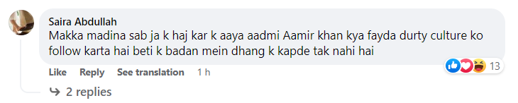 Saira Abdullah wrote, “Aamir Khan went to Mecca Medina but follows the evil culture, the daughter’s body does not even have any clothes.”