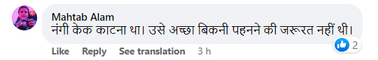 Mahtab Alam wrote, “Should have cut the cake naked. She didn’t need to wear a nice bikini.”