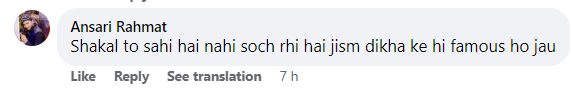 Ansari Rahmat wrote, “The face is not good so she thought of becoming famous by exposing body.”
