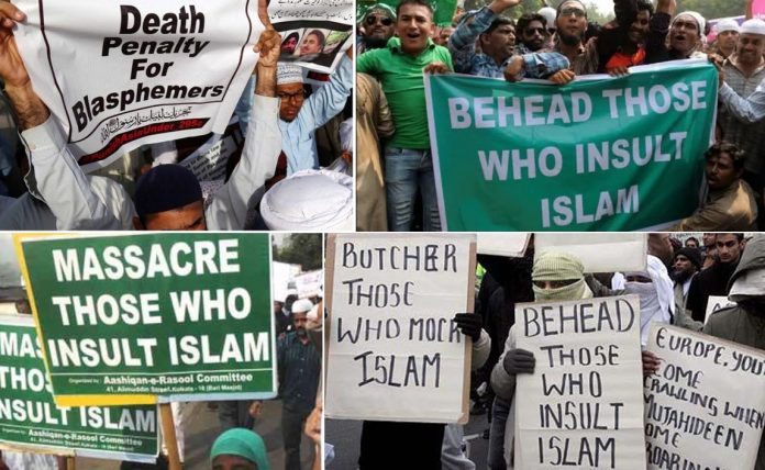 Islamic juridical texts have also prescribed death punishment for blasphemy and are ‘agreed by all Islamic scholars of Ahlus Sunnah wal Jama’ah’ as claimed by Mufti Obaidullah Qasmi from Deoband. In modern-day parlance, however, avenging the acts of blasphemy by killing the blasphemer is the only rule of law. In the countries of the Indian Subcontinent and Africa where the state has often surrendered before Islamist fundamentalism, ‘gustakh-e-Rasool ki ek hi saza, sar tan se juda sar tan se juda’ is a war cry often justified. In Islamic nations like Pakistan, Iran etc, people are executed or jailed for years for alleged blasphemy, if not already killed by Islamist mobs before arrested by police.