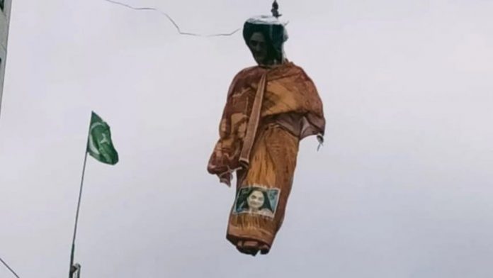 The local police said that the effigy was hanged at night on the cables on Fort Road in the city and it came to the notice of the police at dawn. The effigy has since been removed from the area described as ‘communally sensitive’.