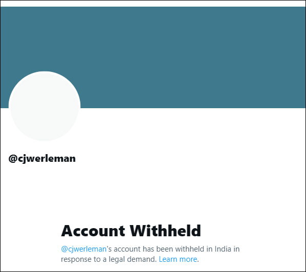 On June 22, the Twitter handle of fake news peddler and Islamic terror apologist CJ Werleman was withheld in India. If someone from India tries to open his account, a message that reads “@cjwerleman’s account has been withheld in India in response to a legal demand” appears on the screen. As per this message, his account has been banned in India following a request from either a court or a competent authority in the government.