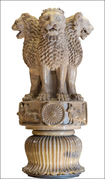 This profile of the Lion Capital was adopted as the National Emblem of India on January 26, 1950. The bell-shaped lotus was omitted from the Ashok Stambha in the official adaptation as National Emblem. It also contains the motto Satyameva Jayate written in Devanagari script below the profile of the Lion Capital, which means ‘Truth Alone Triumphs.’