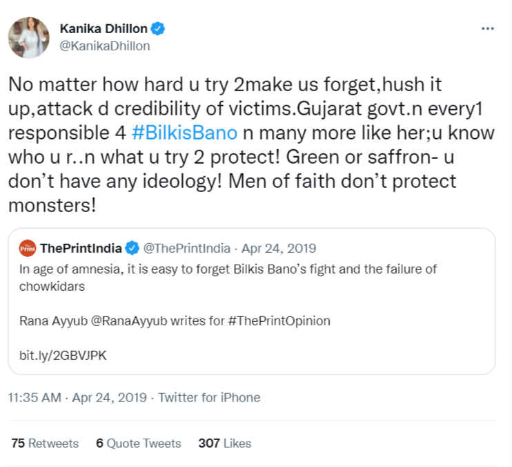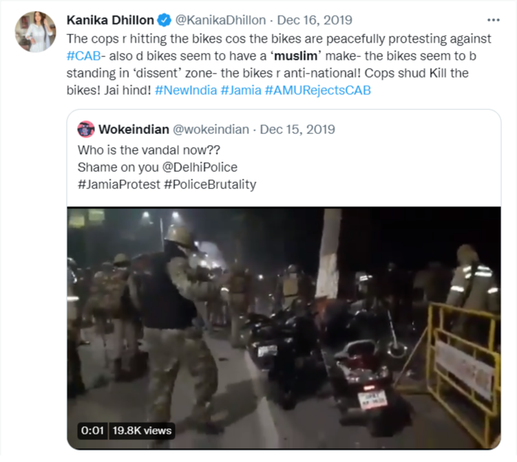 Kanika Dhillon also comes across as a true Islamist apologist. In several tweets, she was seen painting the Muslims as the perpetual victims of the State while keeping her eyes shut to the atrocities committed by their co-religionists.