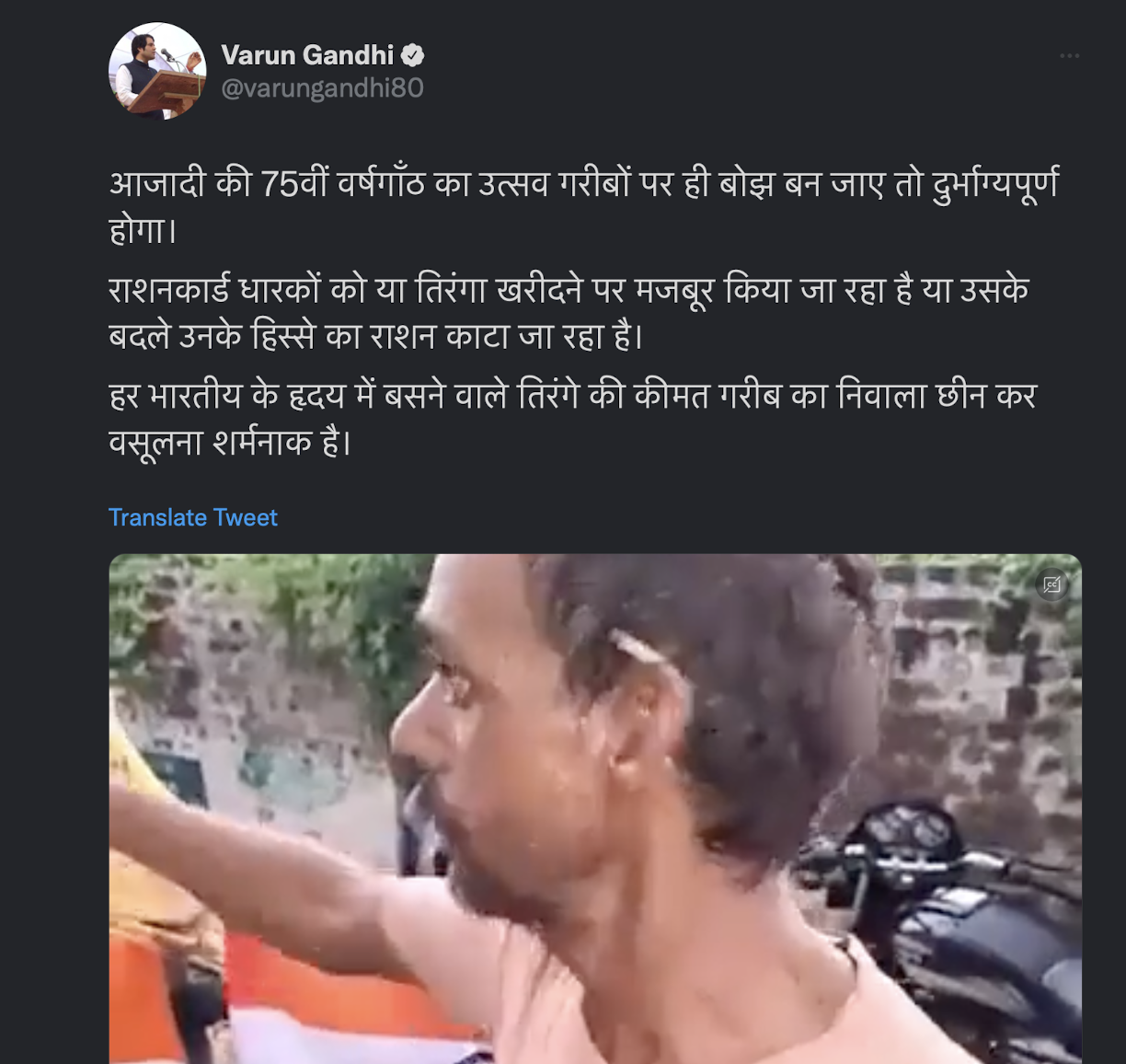 Varun Gandhi also shared the viral video noting that it would be unfortunate if the celebration of the 75th anniversary of independence becomes a burden on the poor.
