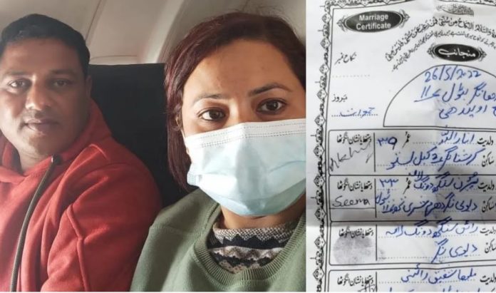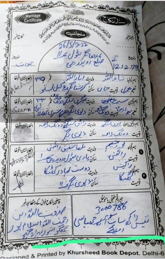 According to details gathered, Sina Lama’s wedding rituals were performed by a Maulana of the Kapilvastu district who wrote their nikah nama (marriage contract) in Arabic. At the end of the Nikah Nama, ‘Amadullah Islampur’ was mentioned. However, what is interesting is that the form used to write the Nikah Nama was designed and printed by some Khurshid Book Depot having Delhi’s Pincode- 110006.