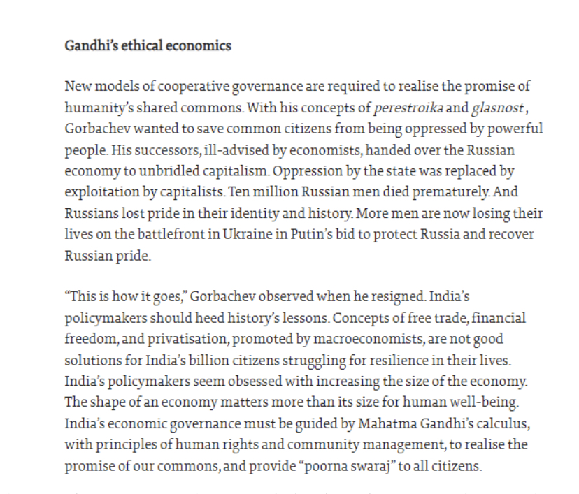 Mikhail Gorbachev passed away on August 30th, 2022. Ever since I was eagerly waiting for the Indian media to take this opportunity to criticise the Modi government. After 8 full days, The Hindu went a step further and utilised this opportunity to criticise the people of India themselves! Today (September 6th), The Hindu published a staggering opinion article on their editorial page, titled “Gorbachev, Macro-economics, and Gandhi”.