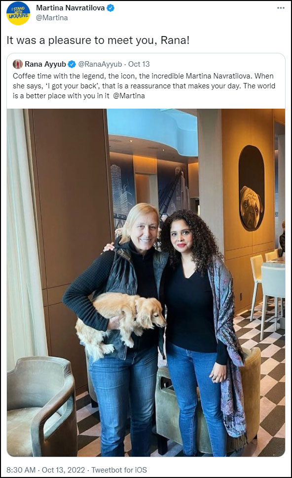 In the following months, Martina and Rana Ayyub continued to have interactions with each other on social media. What was in public could be seen by the netizens, but no one knew if they had spoken in private.