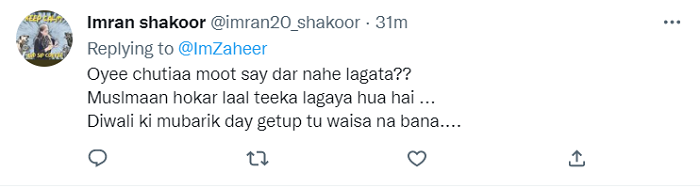 Another user shared a quote in which Mohammed Ali Jinnah, the founder of Pakistan was quoted saying, “Muslims who are opposing Pakistan will spend rest of their lives proving loyalty to India”. The user, who hailed from Pakistan, also termed Jinnah a legend and criticized Khan for wishing everyone on the Hindu festival of Diwali.