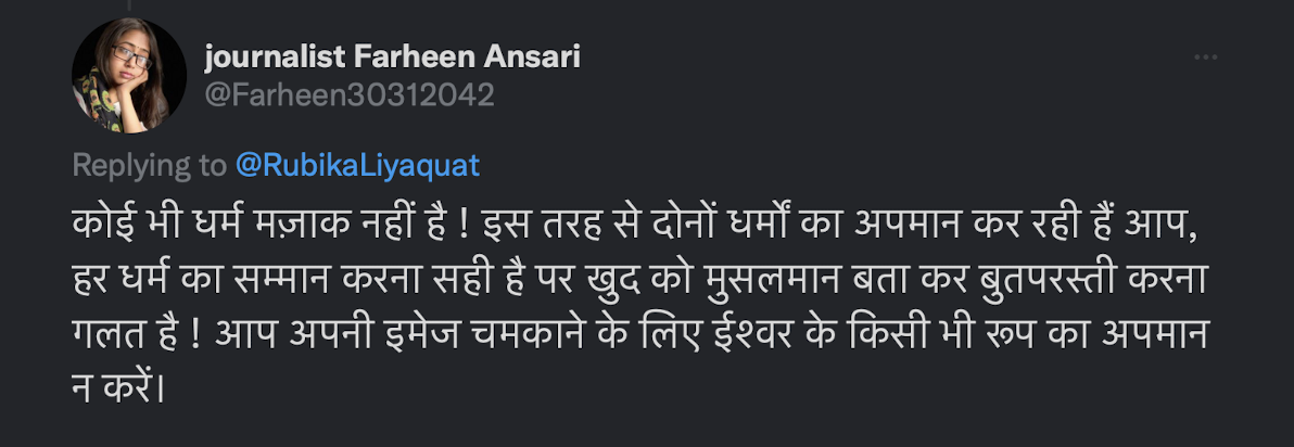 Rubika was also called a ‘kaafir’ who would project herself as a Muslim to further the ‘Hindutva agenda on TV’.