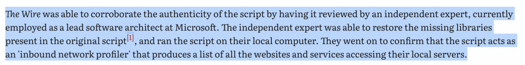 Moving on, based on the claims of Aarthi Sharma, Wire started ‘investigation’ and claimed that they obtained some information from some a source they didn’t reveal. But if one reads the report, it can be found that Wire published the claims despite the fact that they could not verify the claims, and they just blindly reported what their ‘source’ gave them. As mentioned above, an unnamed ‘lead architect at Microsoft’ was thrown in to make the report appear ‘authentic’.