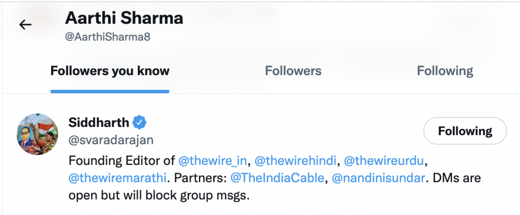 After this, the account has been inactive. One prominent person who follows this account is The Wire Founding Editor, Siddharth Varadarajan.