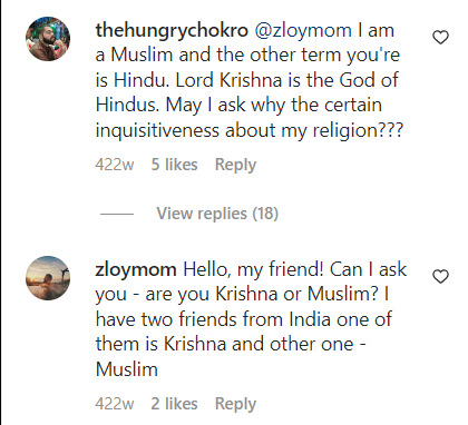 One Instagram user (@zloymom) had inquired about his religious affiliation in the comment section of his 2014 post. “Hello, my friend! Can I ask you – are you Krishna or Muslim? I have two friends from India one of them is Krishna and other one – Muslim,” the user said.