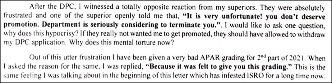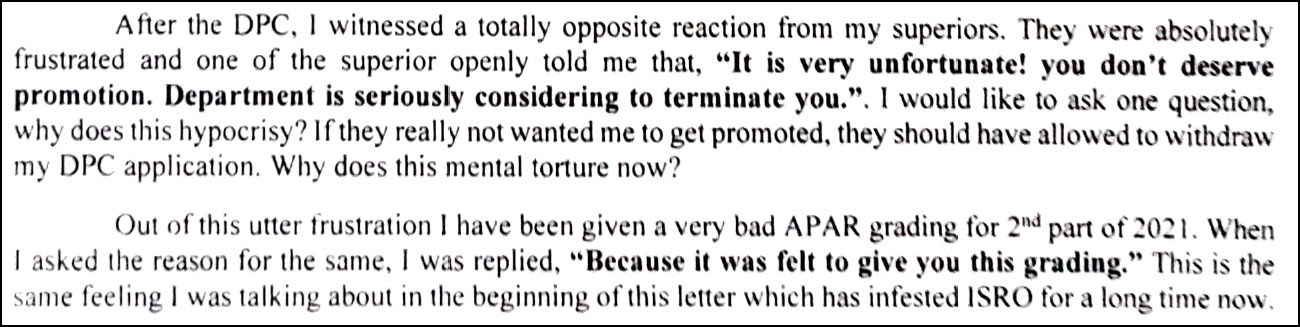 In January 2022, Maurya wrote to the Chief Controller at VSSC, ISRO alleging the senior officials were creating hurdles in the promotion of certain employees to stop them from reaching a decision-making post. He alleged that such acts were being achieved by either giving bad APAR grading or by not recommending the employee for promotion despite good APAR grading.