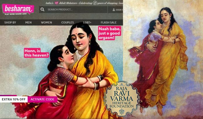 A controversy erupted on November 29 after it was discovered that a sex toys store ‘Besharam’ was using a painting by famous painter Raja Ravi Verma to sell ‘adult toys’. The website used the ‘Menaka Shakuntala’ painting by Raja Ravi Varma and depicted it as if the subjects in the painting were lesbians. Menaka was actually an Apsara and Shakuntala was her daughter, born out of a union with Rishi Vishvamitra. But Besharam depicted them as a lesbian couple, disregarding the sentiments of Hindus.