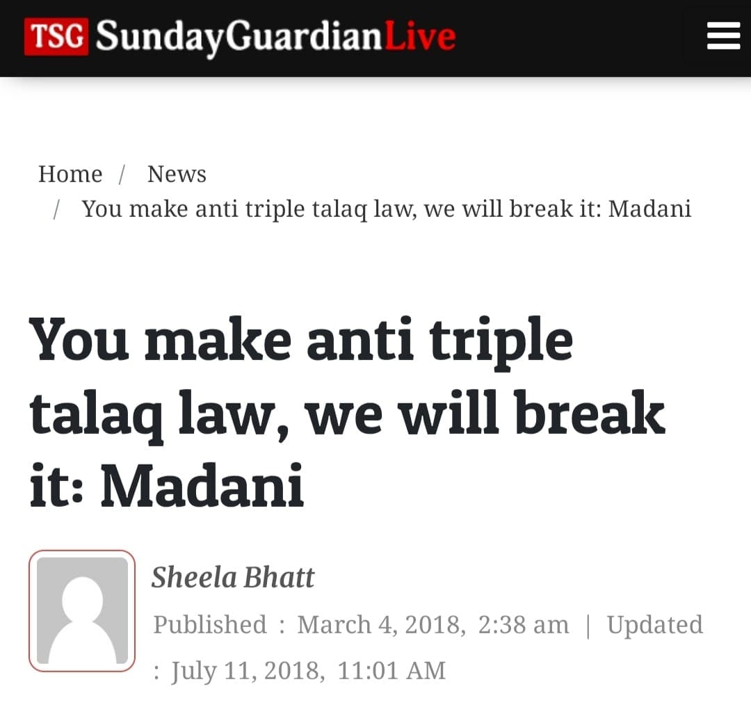 During an interview with The Sunday Guardian (TSG) Live in 2018, Maulana Mahmood Madani alleged that the issue of ‘triple talaq’ was being mainstreamed to demonise the Muslim community.
