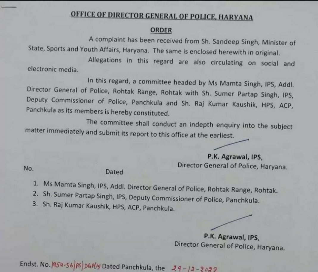 Haryana’s sports minister and former Olympian Sandeep Singh is booked under the charges of sexual misconduct with a female junior coach. Haryana police have received a complaint from the coach who also held a press conference in the office of the opposition party Indian National Lok Dal. The coach had requested chief minister Manohar Lal Khattar to inquire about the matter by setting up a special investigation team. On 29th December 2022, Haryana’s Director General of Police (DGP) PK Agrawal has therefore constituted a committee to investigate this matter.