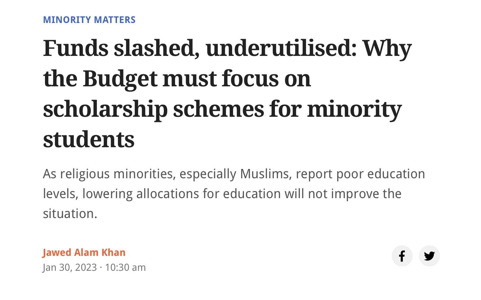 As expected, the broad changes the Minority Ministry has been instituting in the last couple of years had cheesed off the usual suspects and leftist media organisations. Two days before the announcement of the Union Budget 2023, the leftist propaganda portal Scroll published an article lamenting how the Centre had slashed the budget for minorities.
