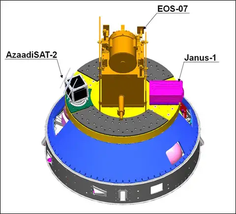 The SSLV successfully placed three satellites in orbit, ISRO’s earth observation satellite-07 (EOS-07), and two passenger satellites Janus-1 and AzaadiSat2. Janus-1, a 10.2 kg satellite, belongs to ANTARIS, USA. About 750 girl students from all over India collaborated to develop the 8.7 kg satellite AzaadiSAT-2 under the direction of Space Kidz India, Chennai.