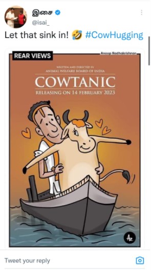 Some other people shared memes featuring the iconic Titanic pose of Rose Dewitt Bukater (Kate Winslet) and Jack Dawson (Leonardo DiCaprio) standing together on the ship railing, between what appeared as a Hindu man and a cow with saffron colour themes.