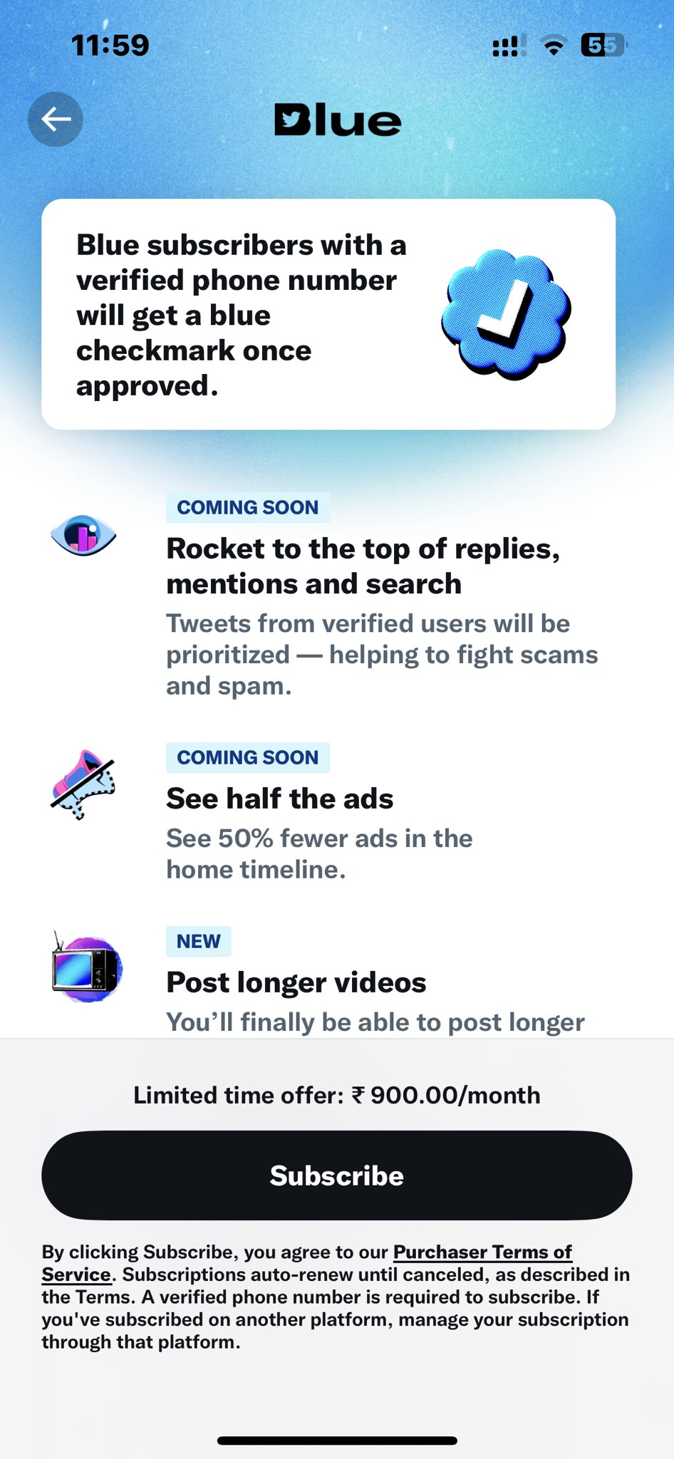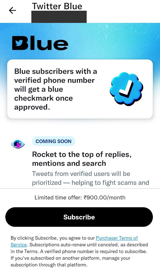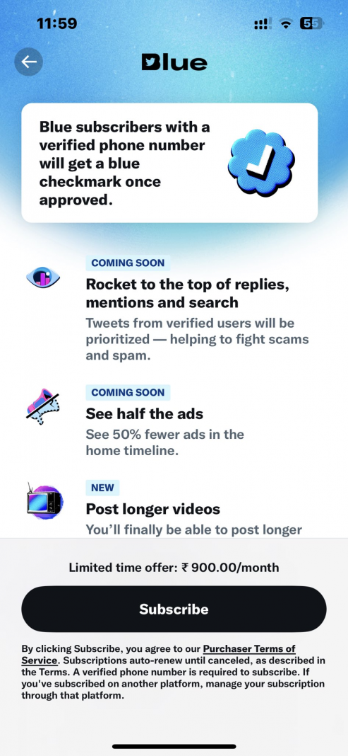 Twitter announced the updated version of the Blue subscription last year with a host of additional features such as the ability to edit a tweet, organize bookmarks, customise the application icon, high-quality video (1080p) and more. More features, including top priority in replies, mentions and searches, lesser ads, the ability to post longer videos and early access to new features, are expected to launch soon. Furthermore, those who have subscribed to Twitter Blue will get a verified badge subject to manual verification.