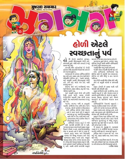 On March 4, 2023, Gujarat Samachar’s supplement ‘Jhagmag’ published a few stories on Holi. The supplement is meant for children and stories are narrated keeping children in mind. There were two different stories on Holi. However, while the essence of the stories was kept intact, the way of narrating the story was completely changed.