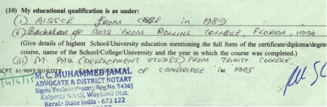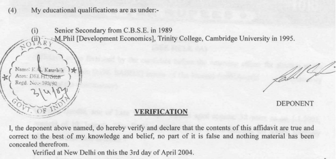 Earlier, Sonia Gandhi’s election affidavits also came under scrutiny for discrepancies in education details. In her 2004 affidavit, she mentioned that she had obtained a certificate in English from Lemox Cook School under Cambridge University. But later it was found that Cambridge has no such school under its affiliation. Subsequently, Sonia Gandhi mentioned it as Lemox Cook School, Cambridge in her 2009 affidavit, which means that it’s a school located in Cambridge city and not a school under the well-known university.