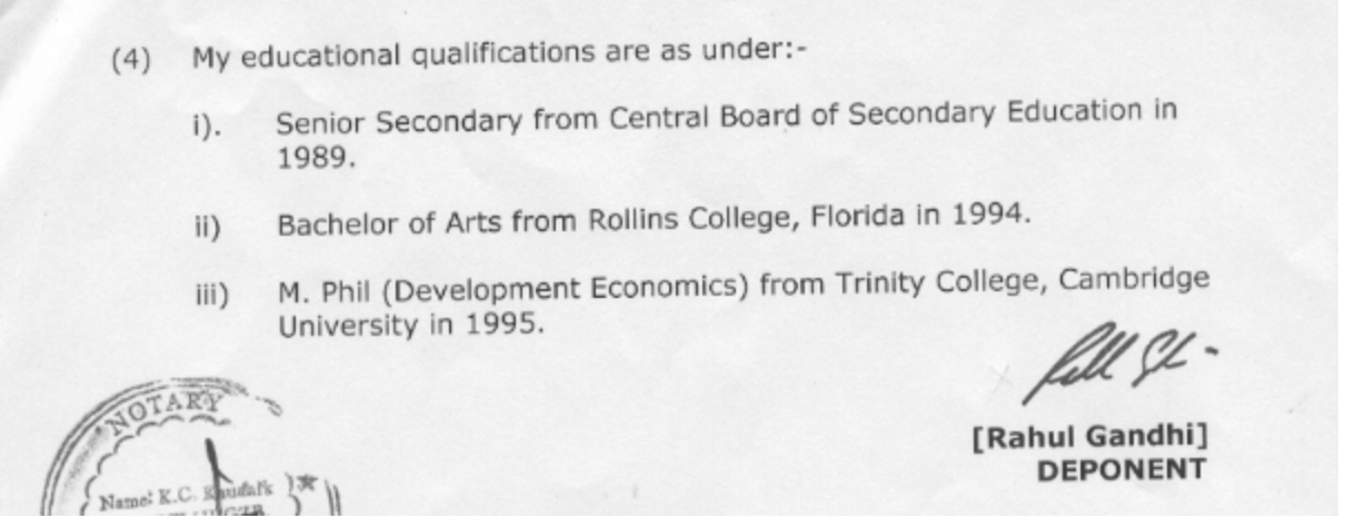 But his affidavit for the 2004 Lok Sabha election tells a different story, as it only mentions his senior secondary exam from CBSE and MPhil Trinity, and has no mention of any bachelor’s degree. If we go by the 2004 affidavit of Rahul Gandhi, he did his MPhil after completing secondary school.
